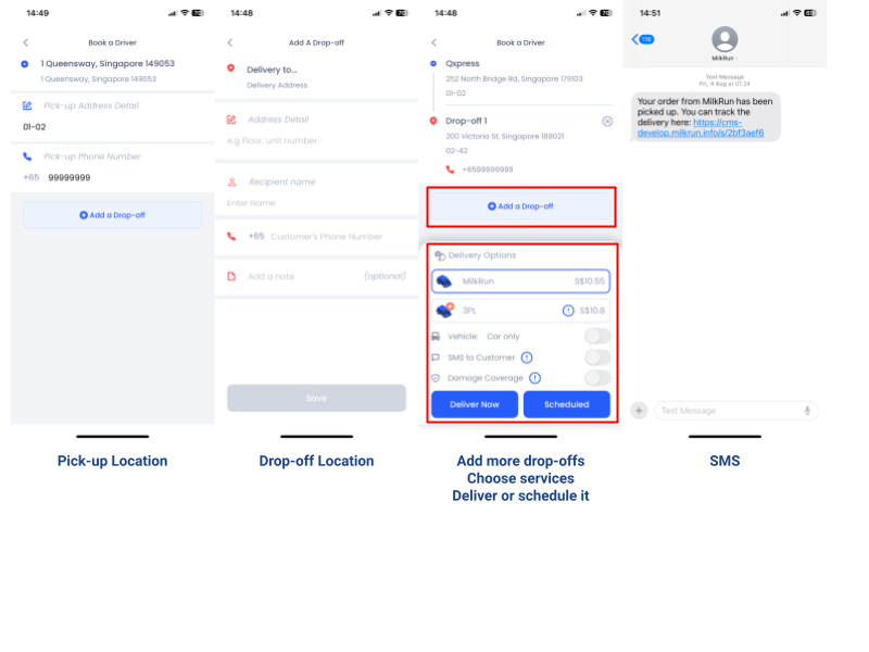 - Drop-off location: key in drop-off location, contact number and recipient name, leave a note if necessary.